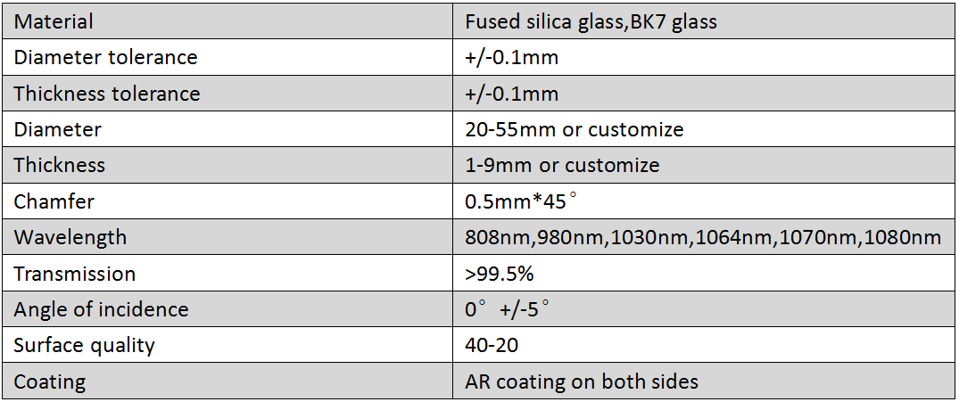 激光保护镜片主要用于激光切割机焊接机种阻挡或防止高温飞溅物损伤价值贵的激光聚焦镜片,但又不能减弱激光输出能量,作为一个最后的光学零件被放置在工作区保护价值高的内部零件,应用于激光切割机焊接机的激光头。
